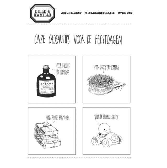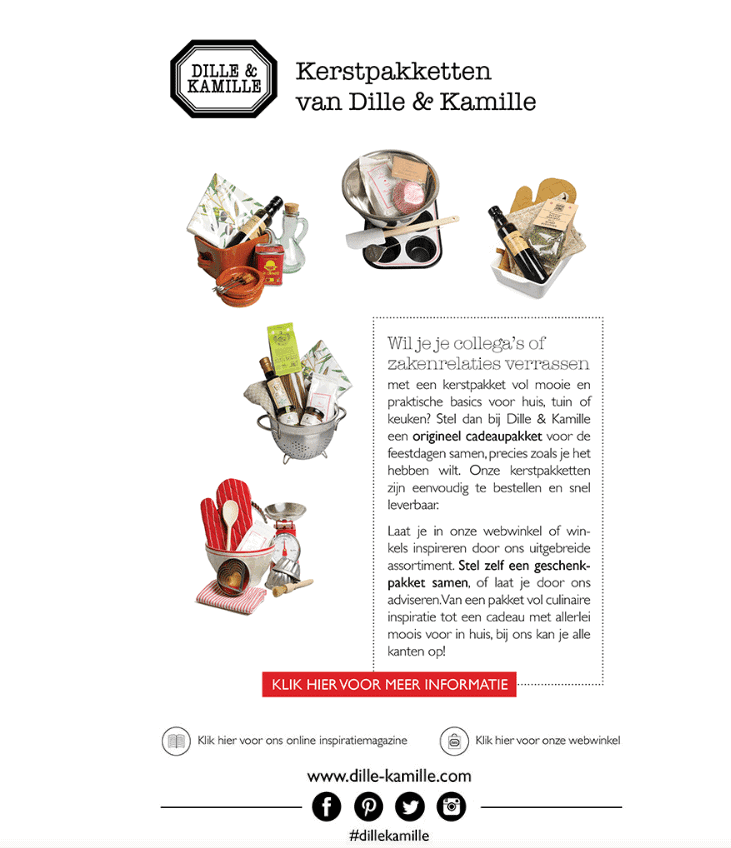Maakt jouw winkel kerstpakketten? Dan is een e-mail waarin deze service de spotlight krijgt onmisbaar. Dille & Kamille stuurde bijvoorbeeld deze mail naar hun abonnees: